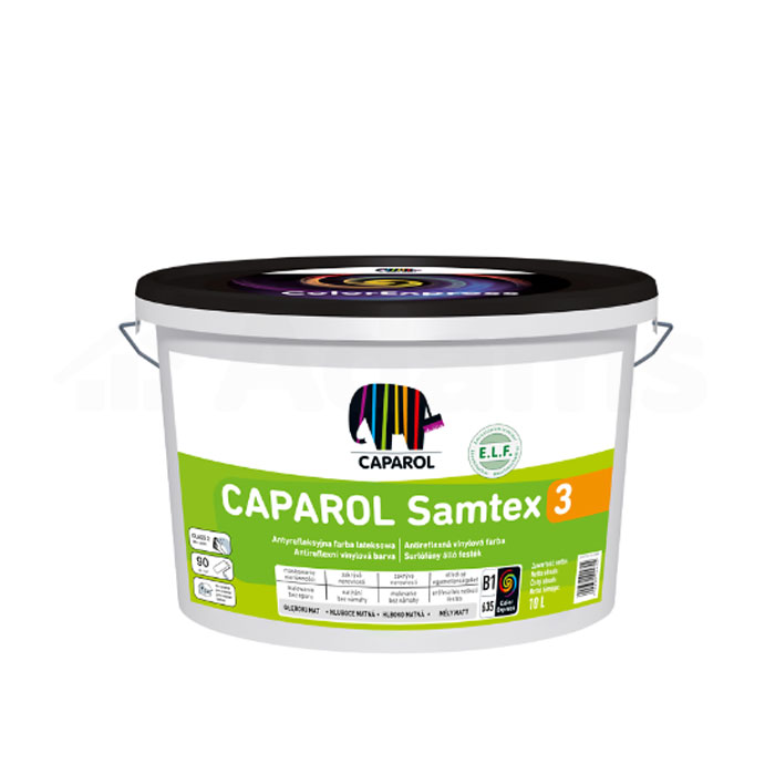 Farba lateksowa CAPAROL SAMTEX 3 B1 przeznaczona jest do wewnętrznych wymalunków na powierzchniach ścian i sufitów. Nadaje się do stosowania na gładź gipsową, gipsowe masy szpachlowe, tynki cementowo-wapienne i dyspersyjne, beton, cegłę klinkierową i silikatową oraz płyty karton-gips. Emulsją można odnowić stare powłoki farb dyspersyjnych, a także dobrze przyczepne tapety, np. z włókna szklanego.