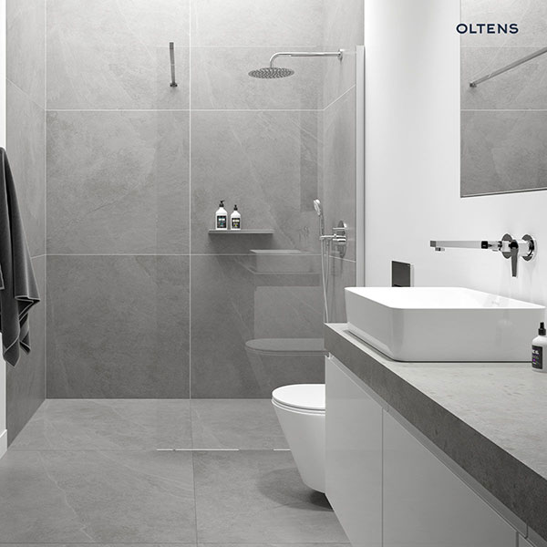 Baterie z linii Oltens Katla o minimalistycznym i nowoczesnym stylu, która idealnie sprawdzi się w łazienkach o takim właśnie charakterze.