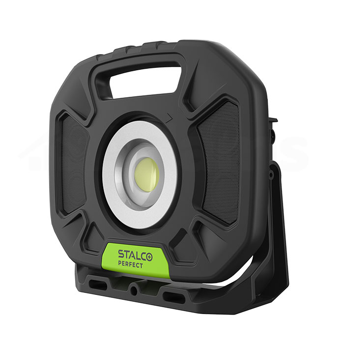 Reflektor STALCO AKU LED LUM X C-FLS40W BT to zaawansowany, przenośny reflektor roboczy, który jest całkowicie pyłoszczelny, odporny na uderzenia i działanie wody, idealny do pracy w trudnych i wymagających warunkach. Ten profesjonalny reflektor jest wyposażony w funkcję Bluetooth oraz dwa głośniki o mocy 2x5W.