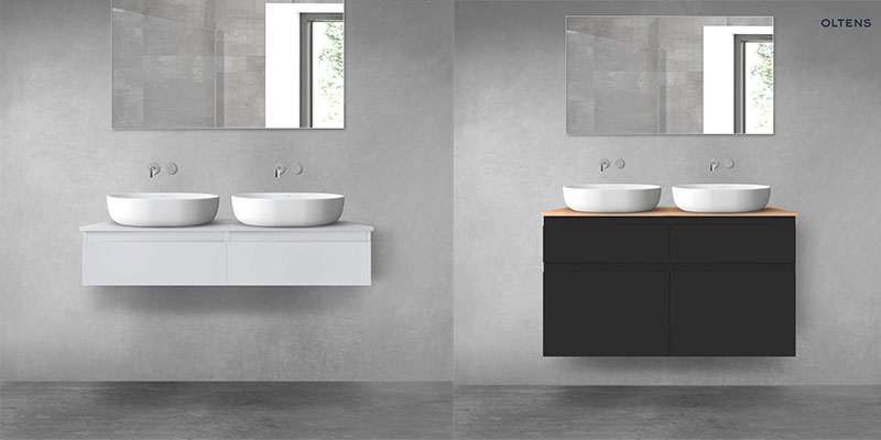 • Oltens Vernal szafka 100 cm podumywalkowa wisząca z blatem czarny mat/biały połysk 68123300